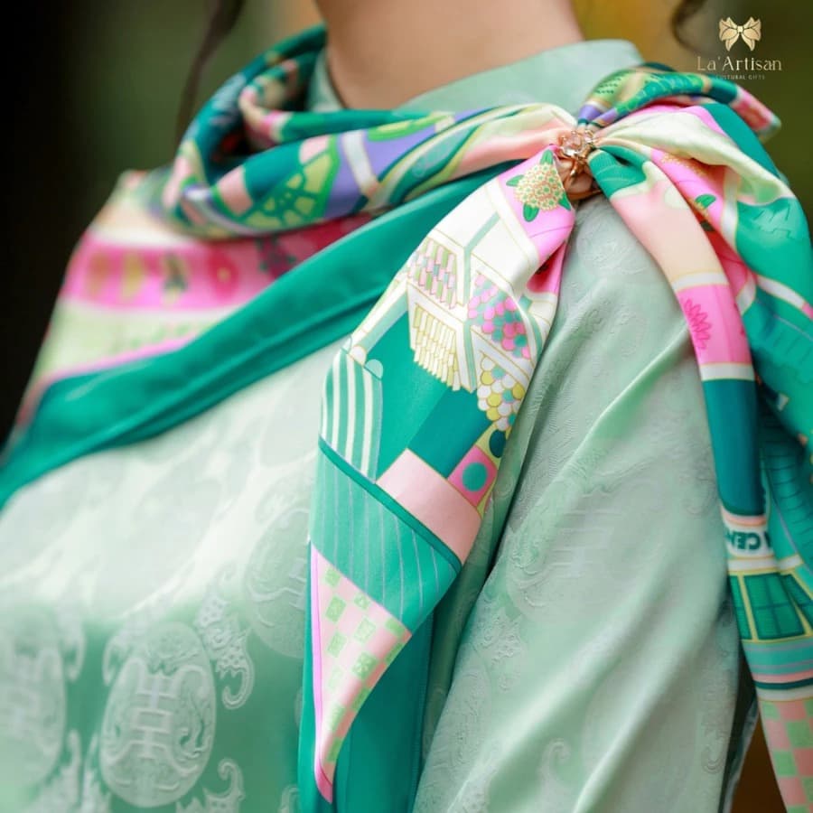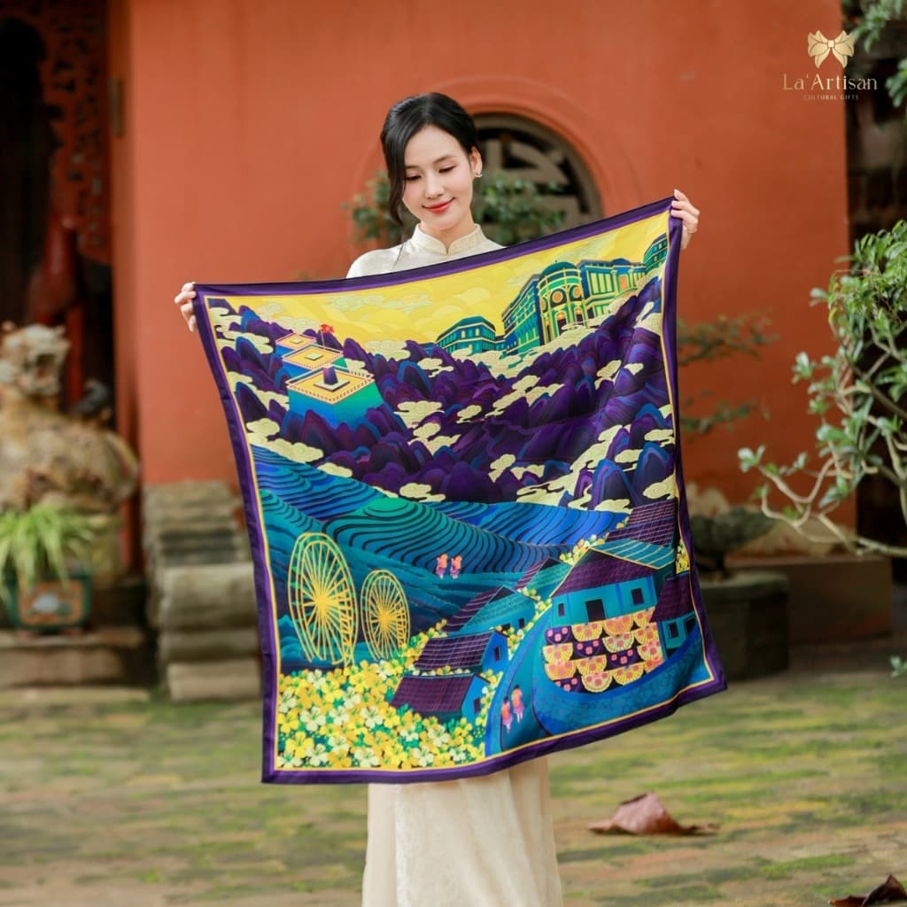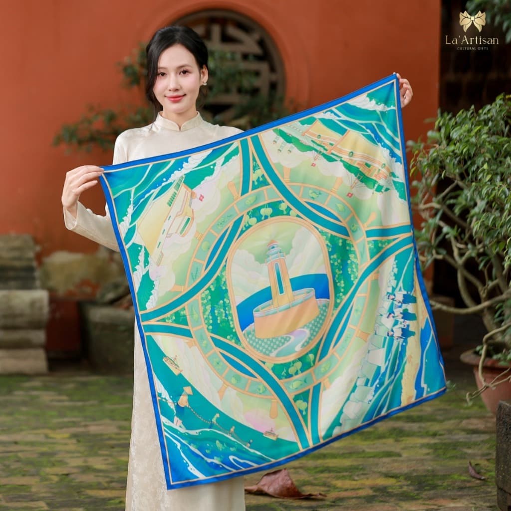 Experience the Essence of Vietnam with Elegance! 🇻🇳 This stunning scarf embodies the delicate yet vibrant beauty of the lotus flower, a symbol of culture and connection in Đồng Tháp. Perfect for adding a touch of sophistication and storytelling to any outfit. Key Benefits ✅ • Elegant design inspired by the timeless lotus flower • Versatile accessory that enhances any casual or formal look • Represents cultural significance and local heritage Features 🌟 • Beautiful lotus and leaf patterns on a soft blue-green background • Crafted using high-quality materials for comfort and style • Lightweight and breathable, perfect for all seasons Specifications 📌 • Size: Standard scarf dimensions • Color: Gentle pink with harmonious blue and green tones • Material: Soft and durable fabric for lasting use